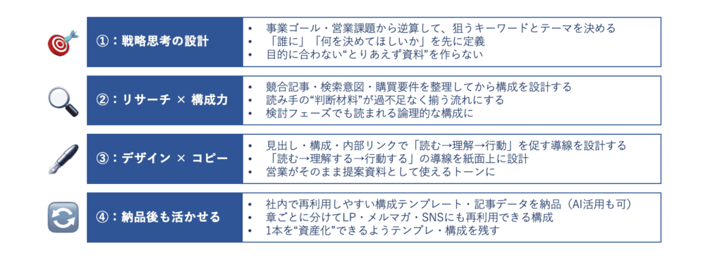 PVは“ 量産して終わり ” ではなく、“ 商談につながる記事 ” を設計します。