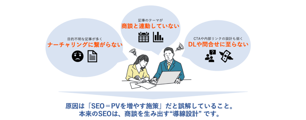 そんな課題を解消する「商談を生むSEO」設計をご提案します。